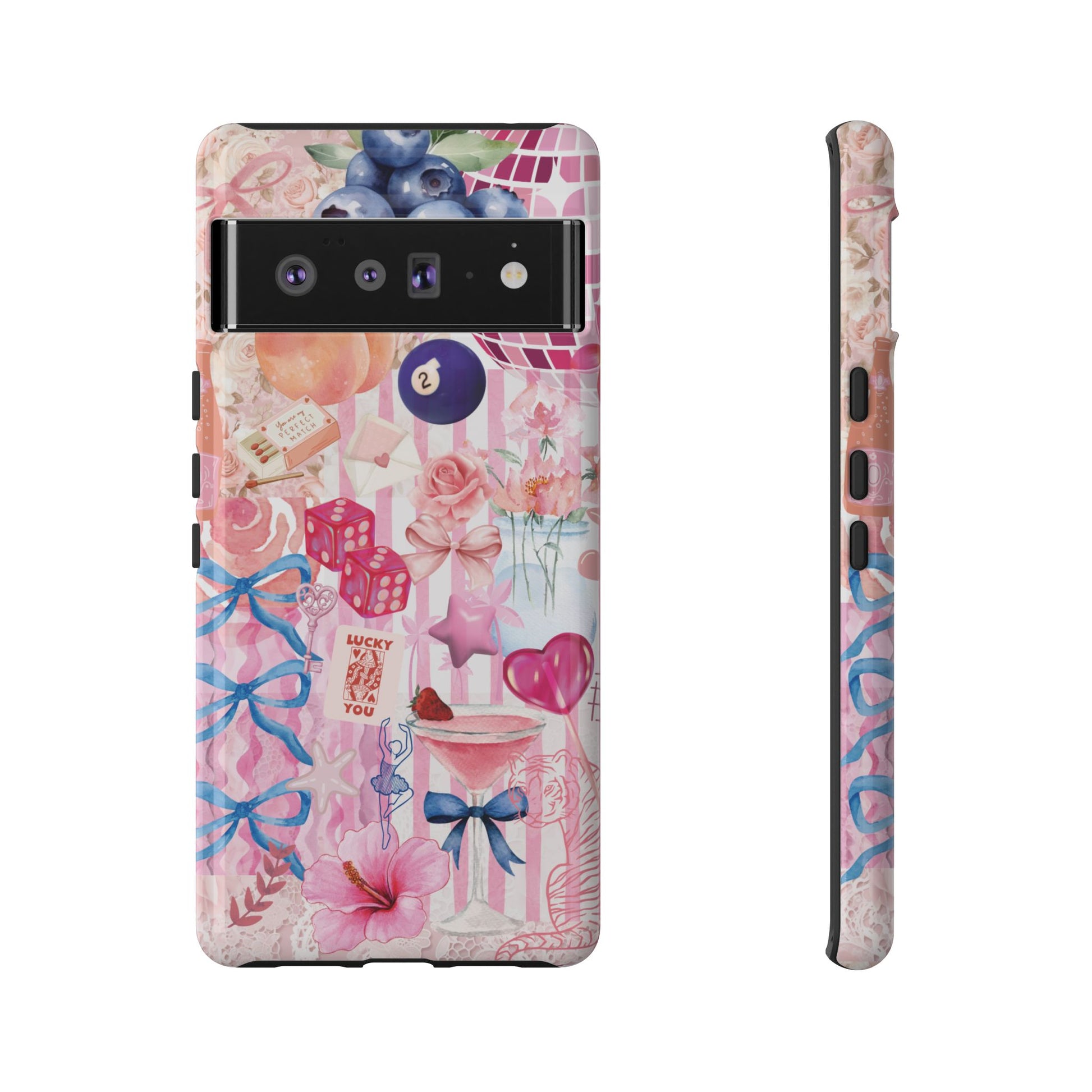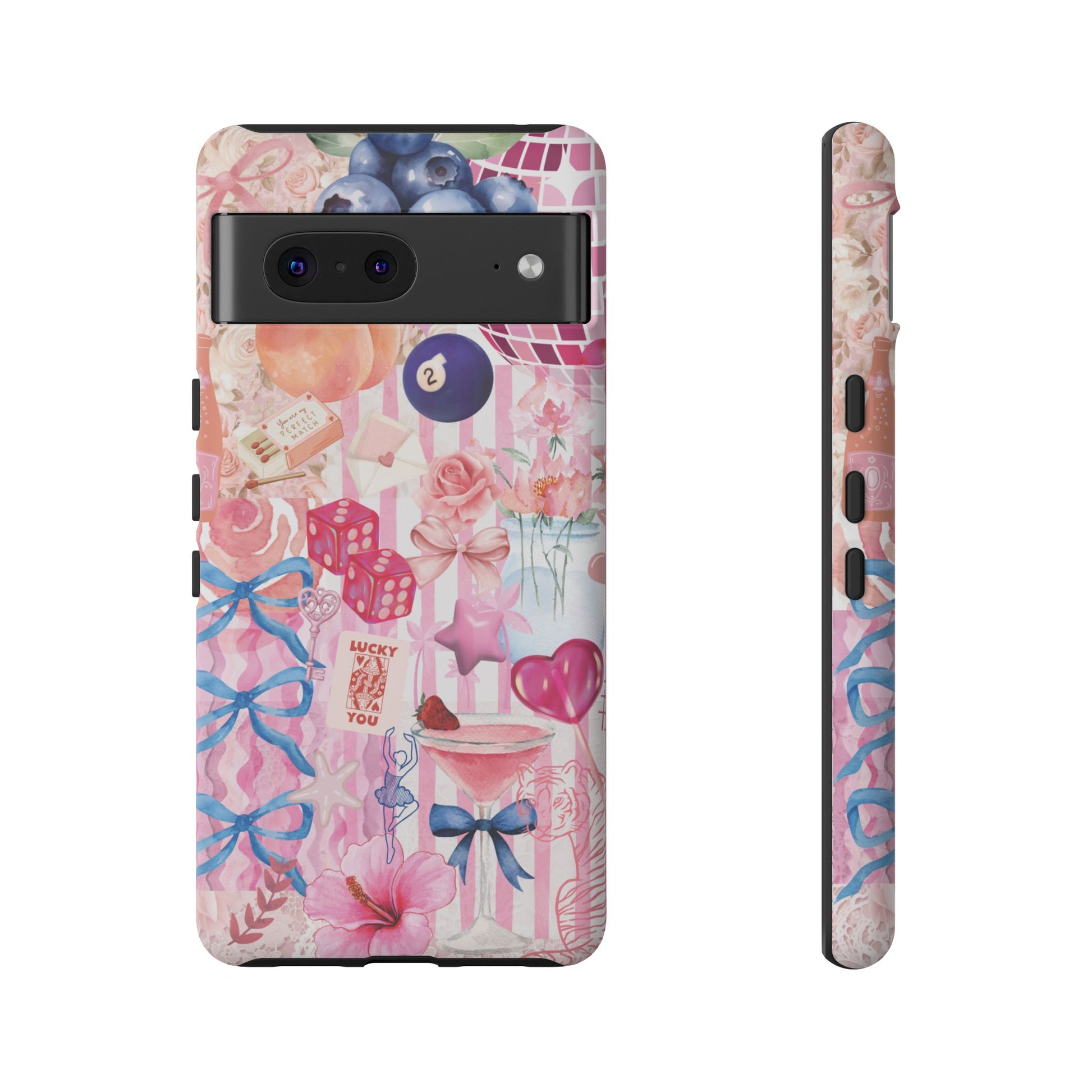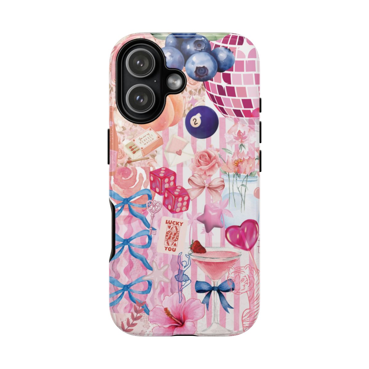 Dazzle and delight with the Beribboned Beauty Ball phone case! This playful mix of bows, blooms, and a disco ball shimmer adds a touch of whimsy to your everyday tech. It's the perfect accessory to keep your phone protected in sparkling style.