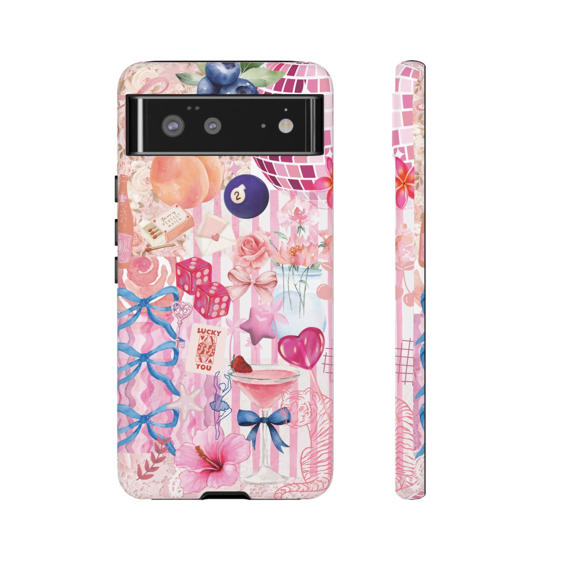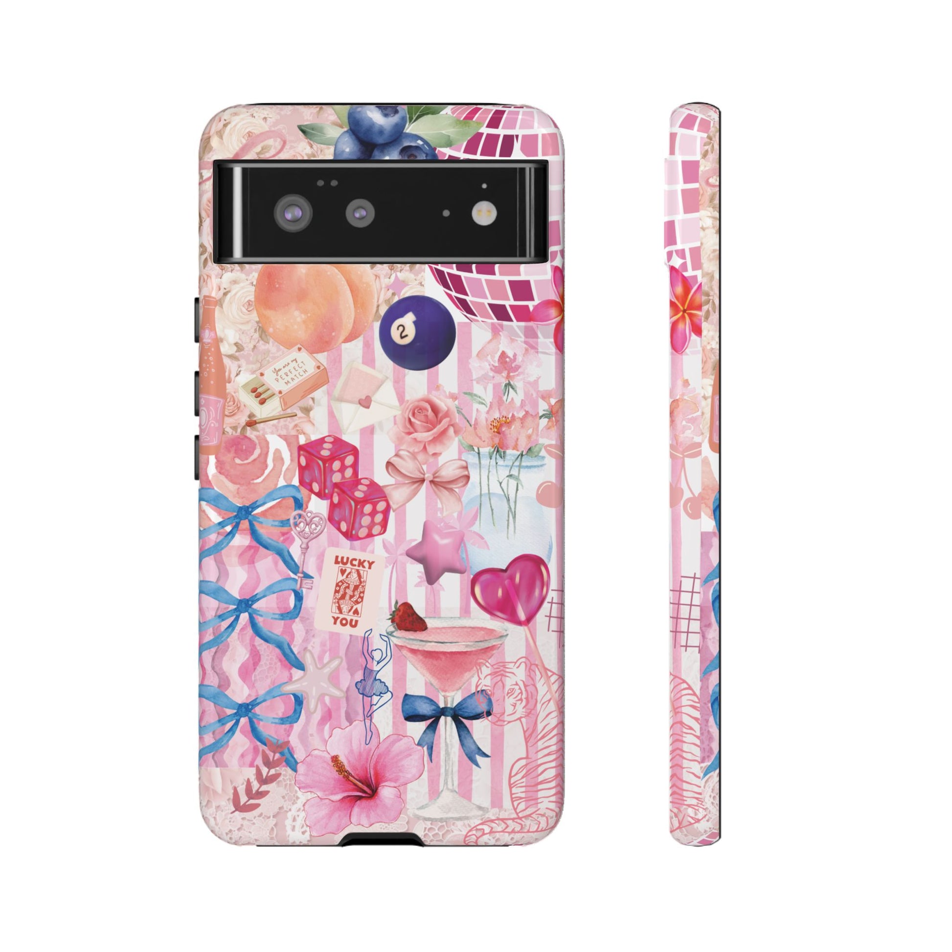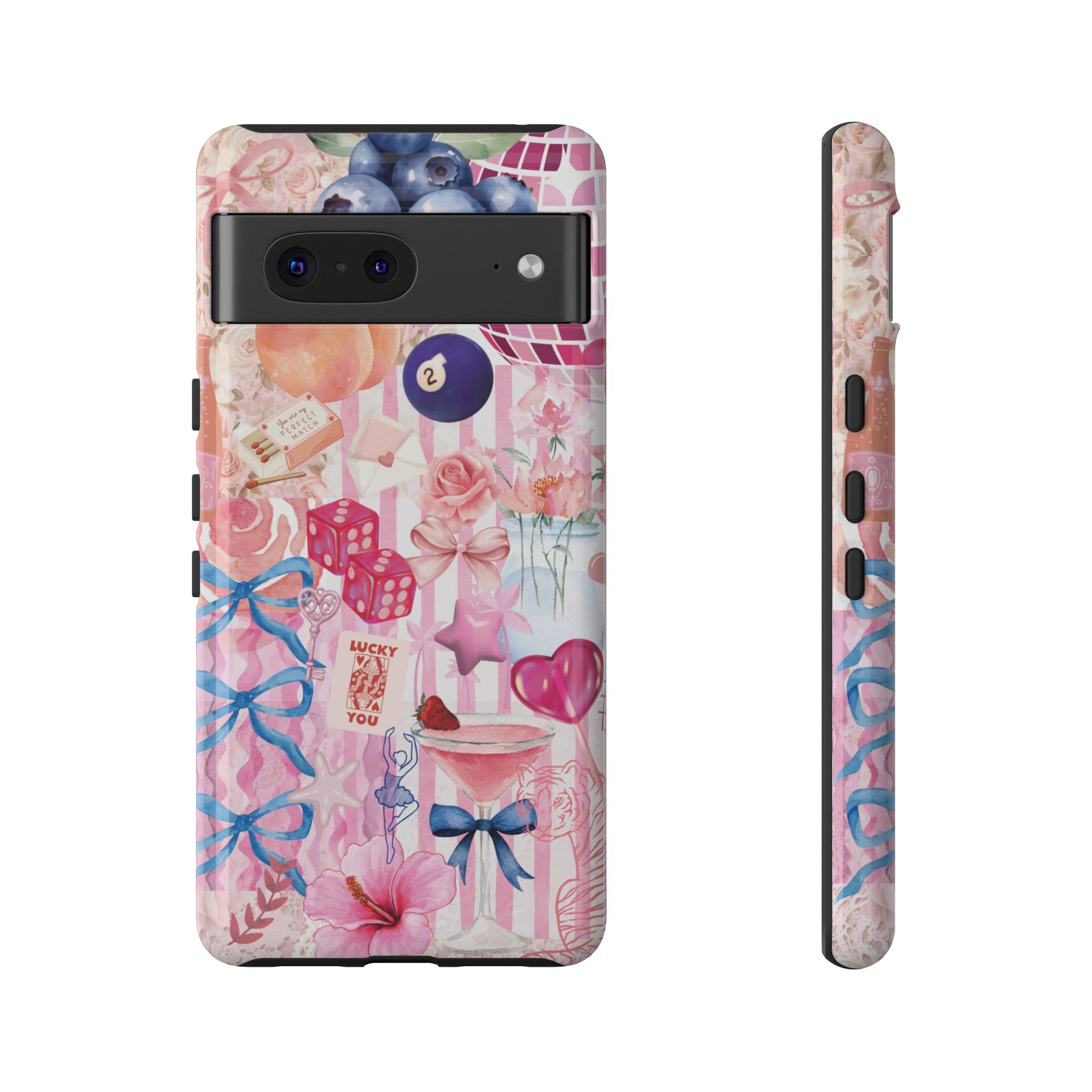 Dazzle and delight with the Beribboned Beauty Ball phone case! This playful mix of bows, blooms, and a disco ball shimmer adds a touch of whimsy to your everyday tech. It's the perfect accessory to keep your phone protected in sparkling style.