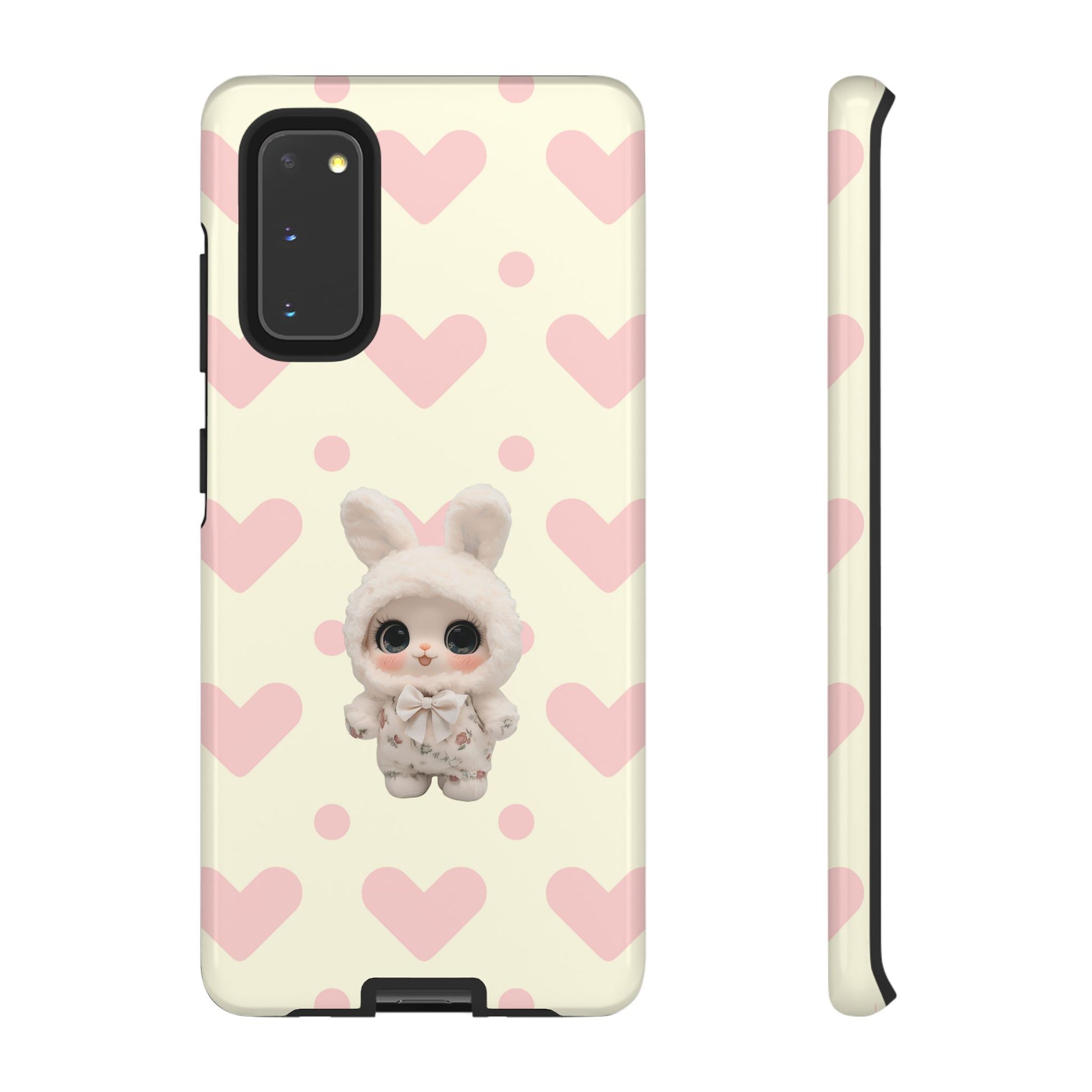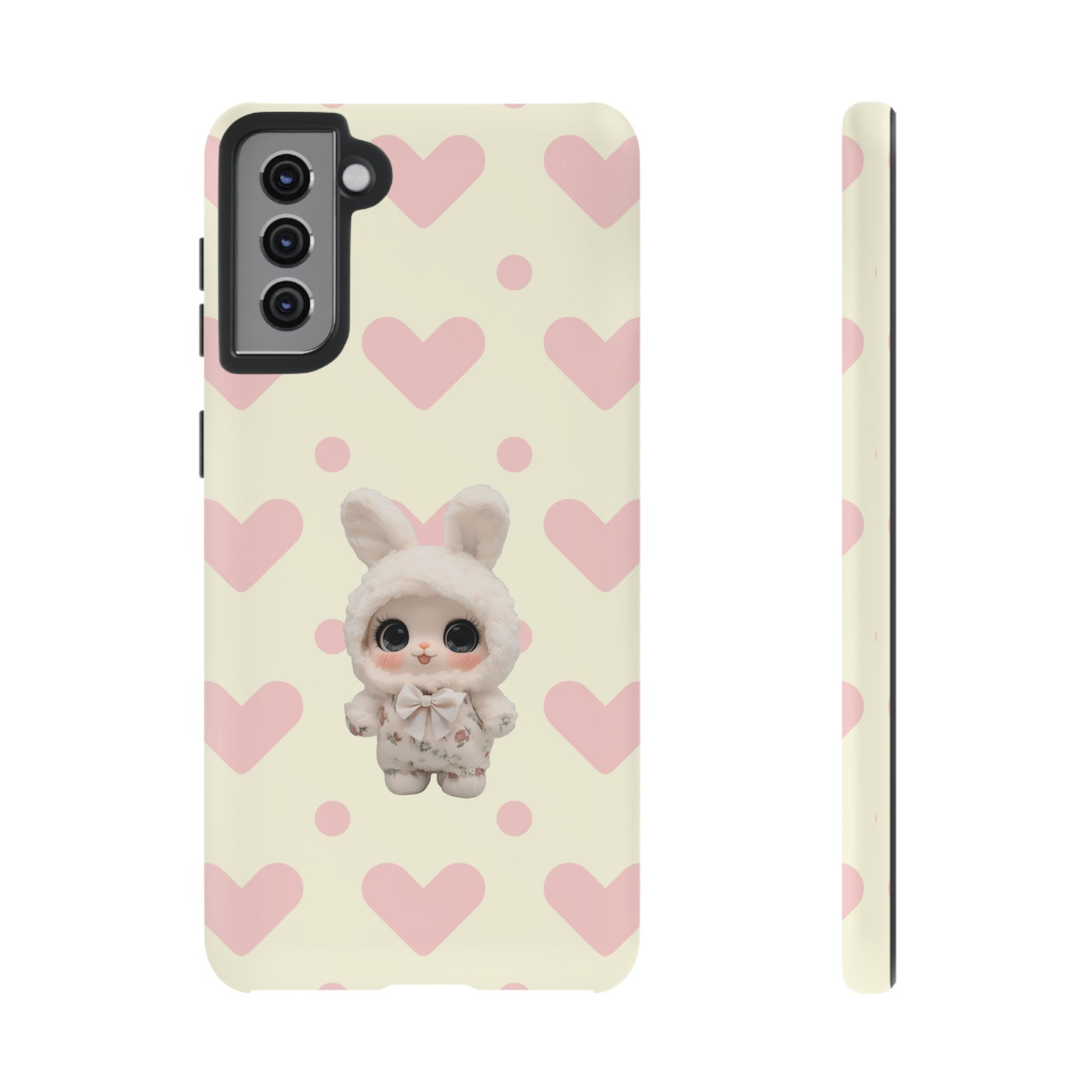 Wrap your phone in pure affection with the "Heartfelt Hoppy" phone case! This irresistibly cute design features an adorable white bunny, front and center, against a creamy background playfully adorned with soft pink hearts and small pink polka dots. It's a whimsical and heartwarming accessory that perfectly expresses love and brings a smile to your face every time you use your phone, adding a touch of cheerful, heartfelt charm.