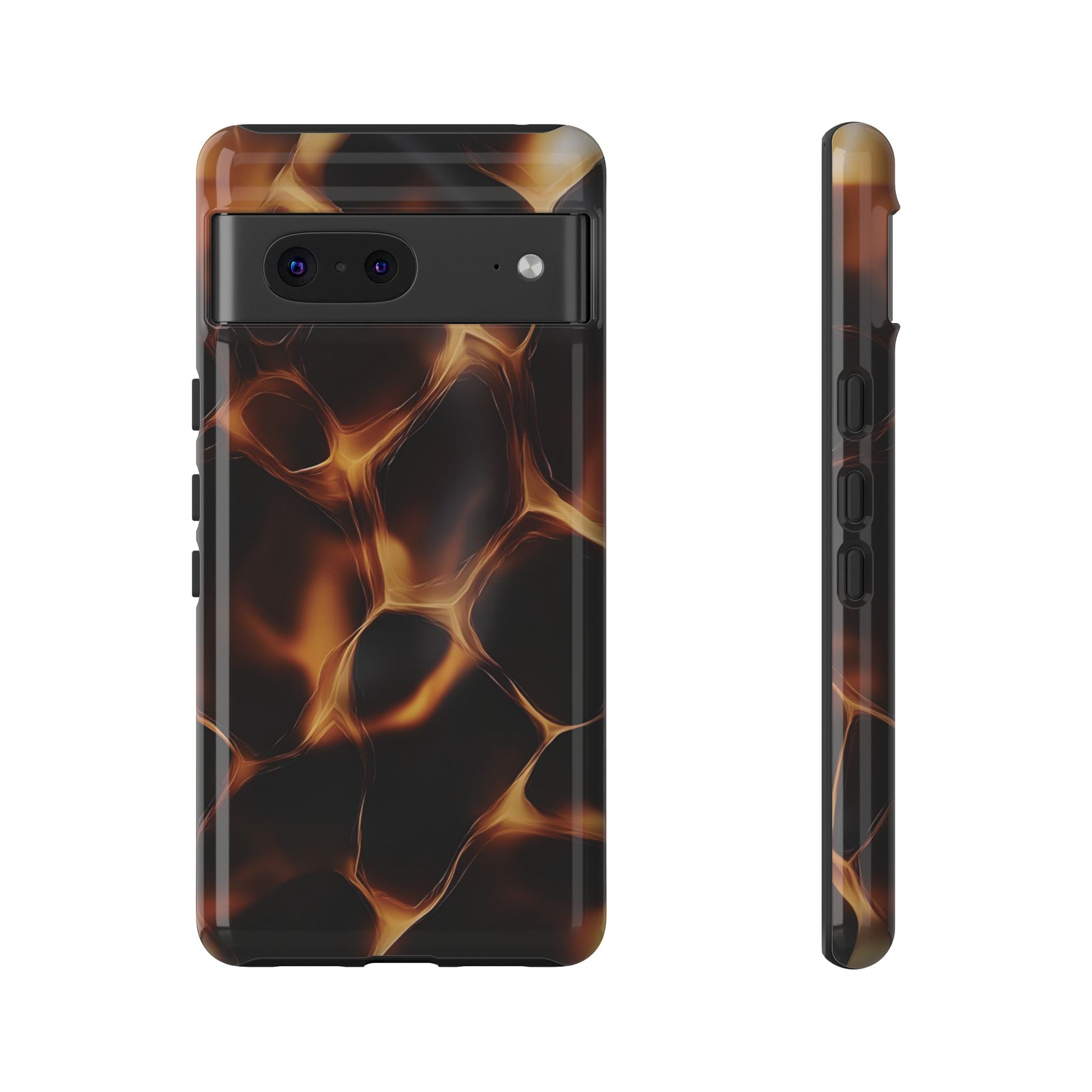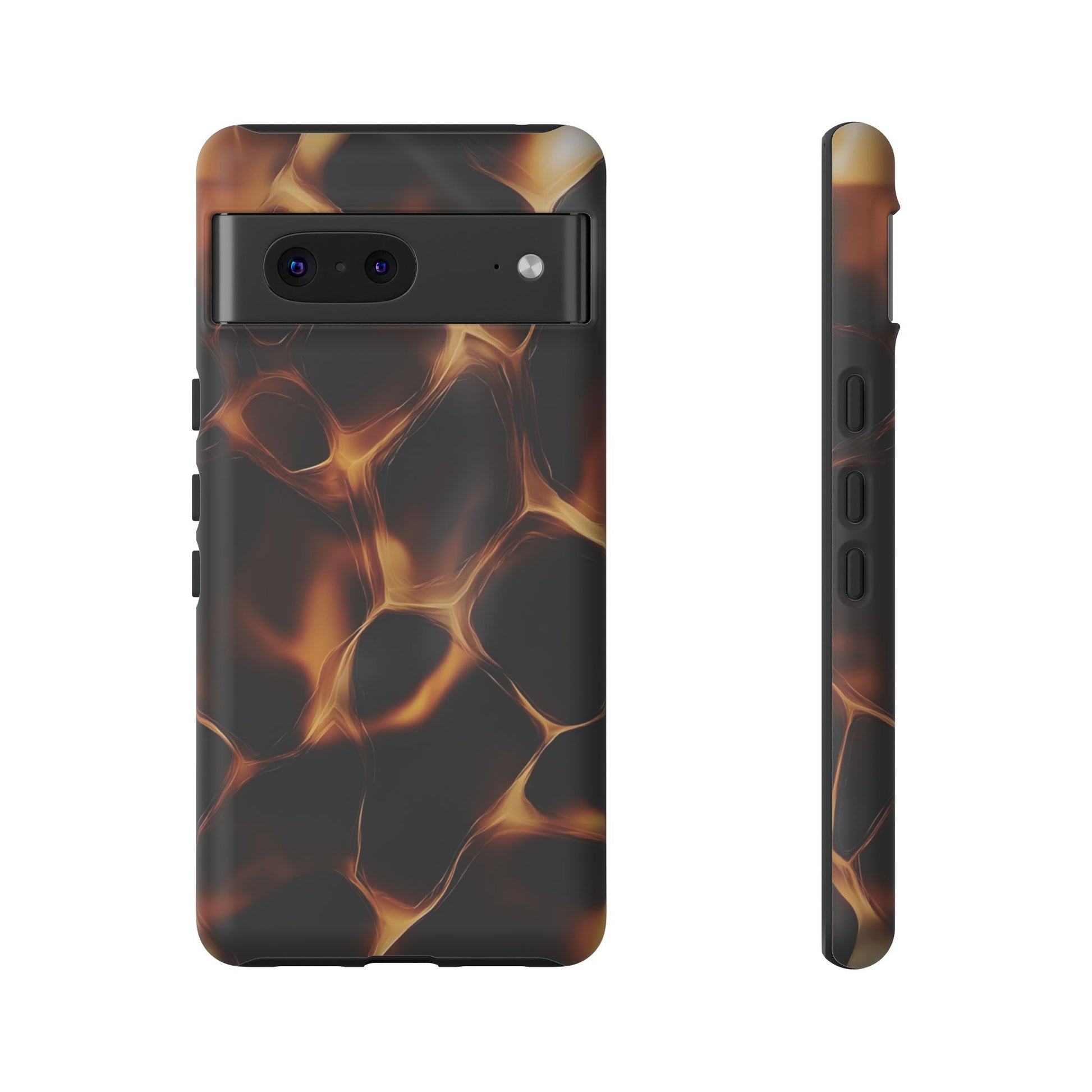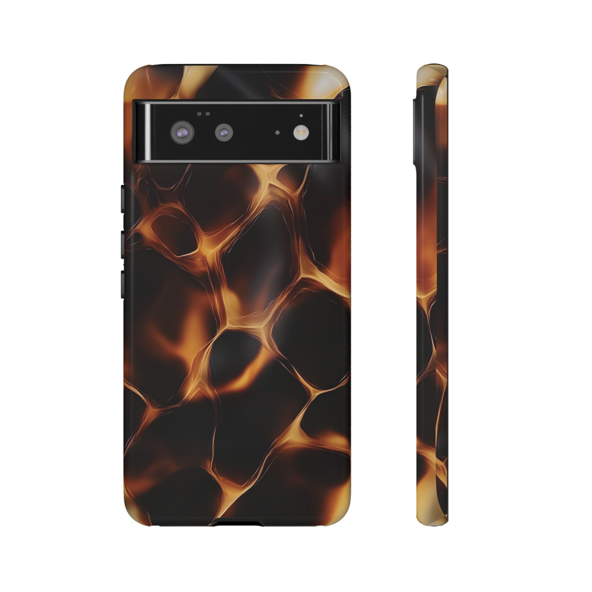 Embrace the heat and drama of the "Lava Flow" phone case. This captivating design features a mesmerizing pattern of glowing amber lines against a deep black background, reminiscent of molten lava flowing through the night. The "Lava Flow" phone case is perfect for those who appreciate unique and captivating designs. It's a stylish and intriguing way to add a touch of warmth and mystery to your everyday look.