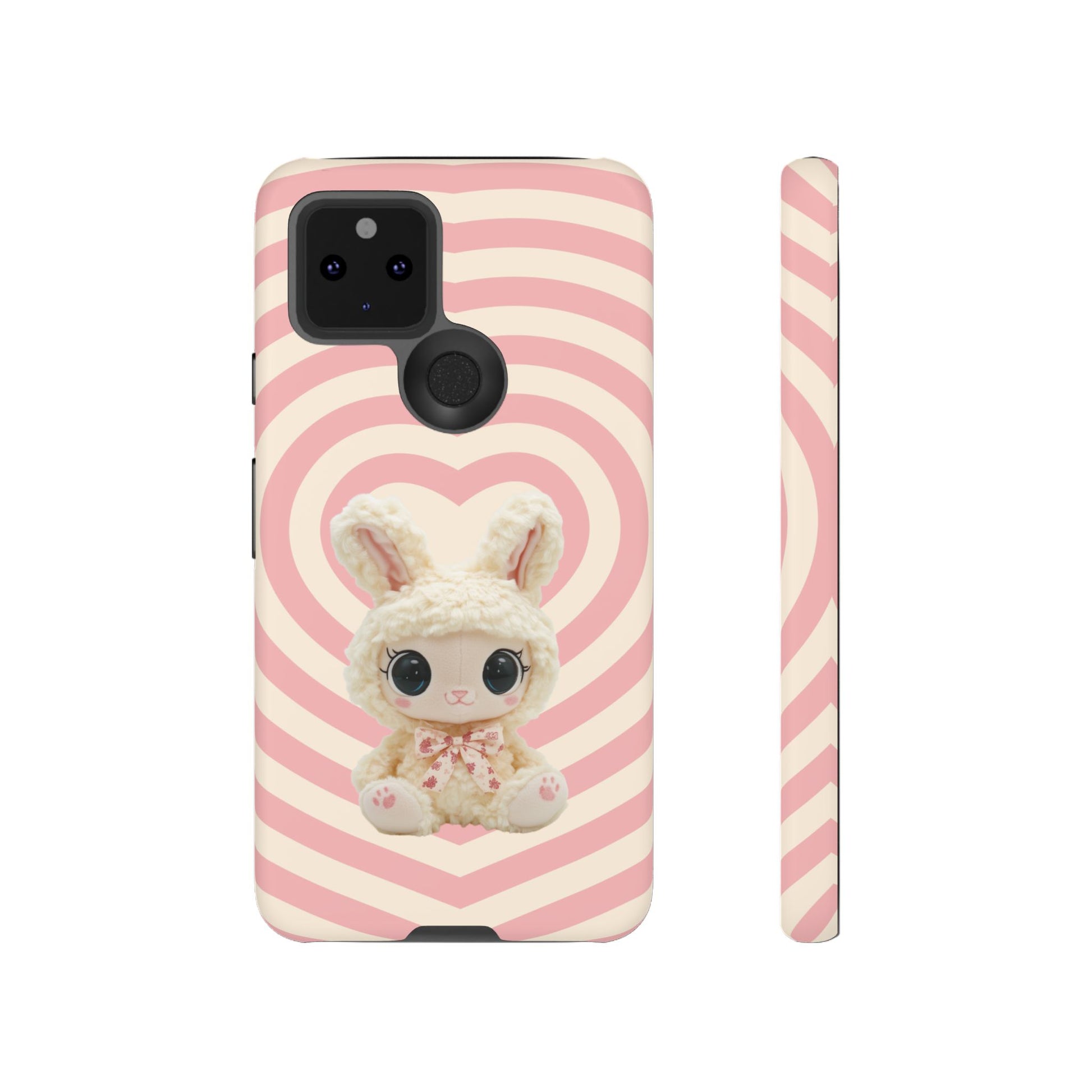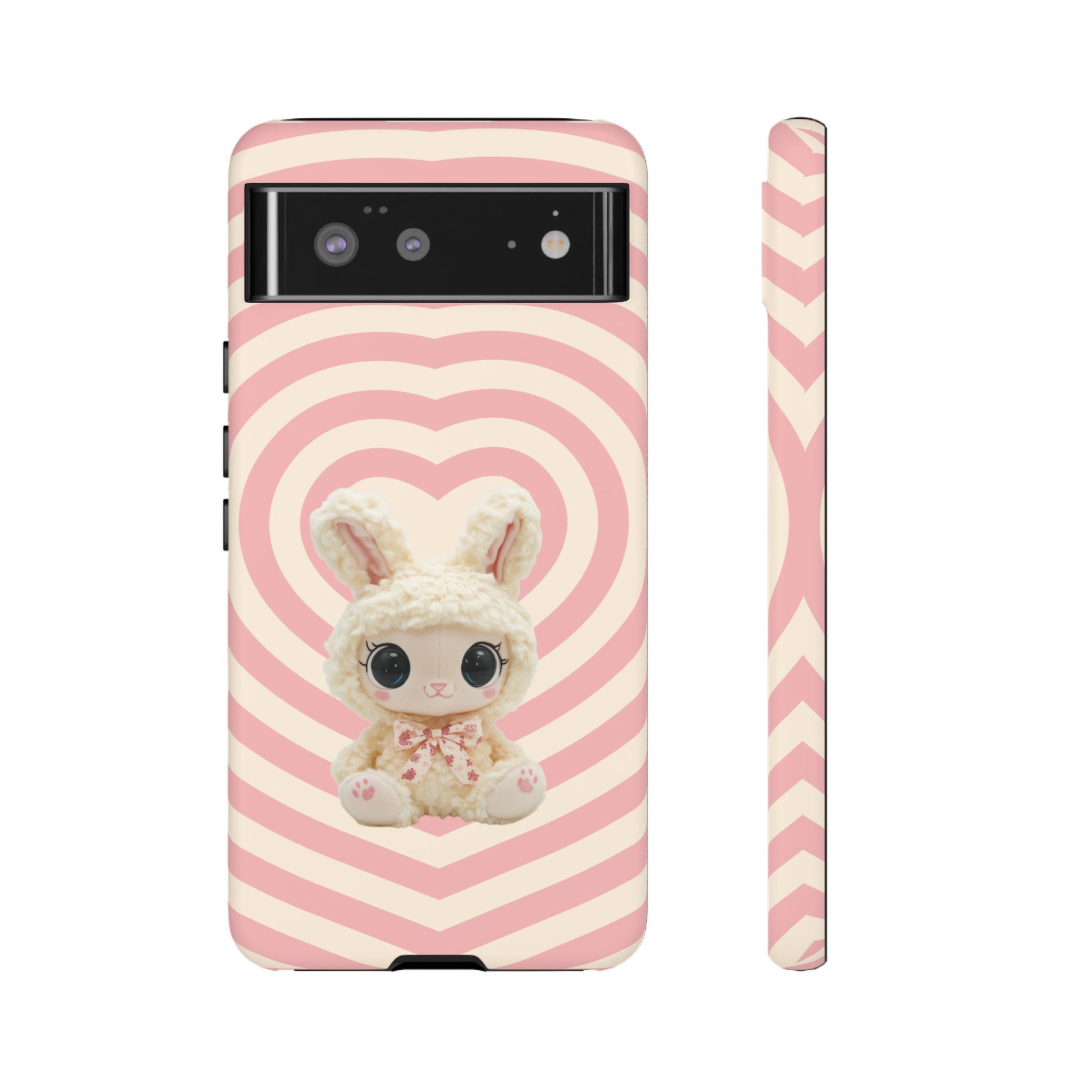 Wrap your phone in pure affection with the "Lovey Bun" phone case! This irresistibly cute design features an adorable white bunny in a fluffy hoodie, front and center, against a charming background of concentric pink and white hearts. It's a whimsical and heartwarming accessory that perfectly expresses love and brings a smile to your face every time you use your phone, celebrating endless affection with your sweet "Lovey Bun."