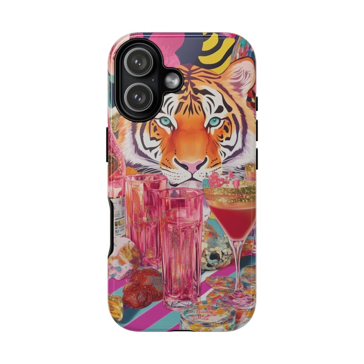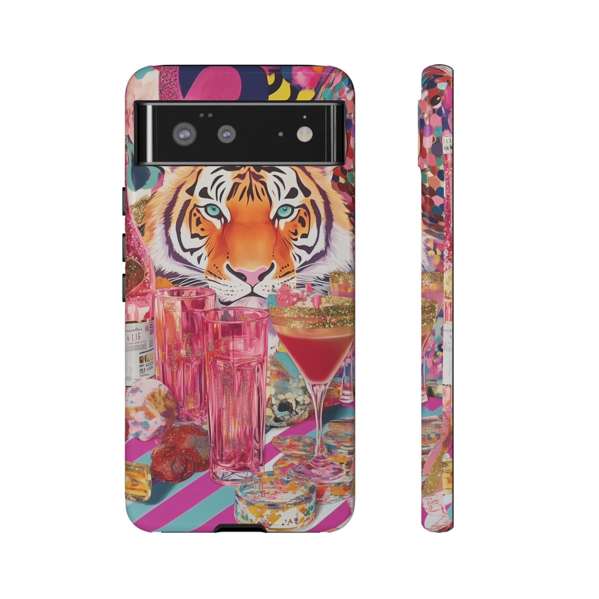 Get ready to party with the "Wild Night Out" phone case. This bold and captivating design features a majestic tiger gazing intently, surrounded by glamorous cocktails and a touch of sparkle, creating a wild and exciting atmosphere. The "Wild Night Out" phone case is perfect for anyone who loves bold and confident designs. It's a stylish and fun way to add a touch of excitement to your everyday look.