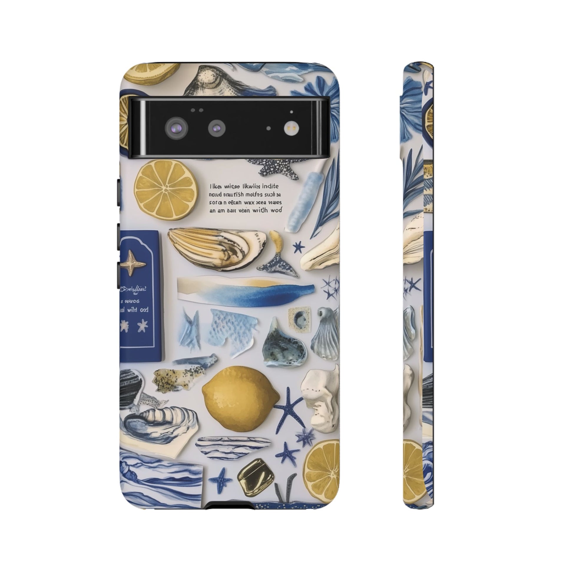 Channel the carefree spirit of the coast with the Salty Shores phone case. This design pairs a calming navy blue with a touch of sunny yellow, evoking the tranquility of a beach at dusk. Imagine the gentle lapping of waves against the shore, the salty breeze, and the warm glow of the setting sun.