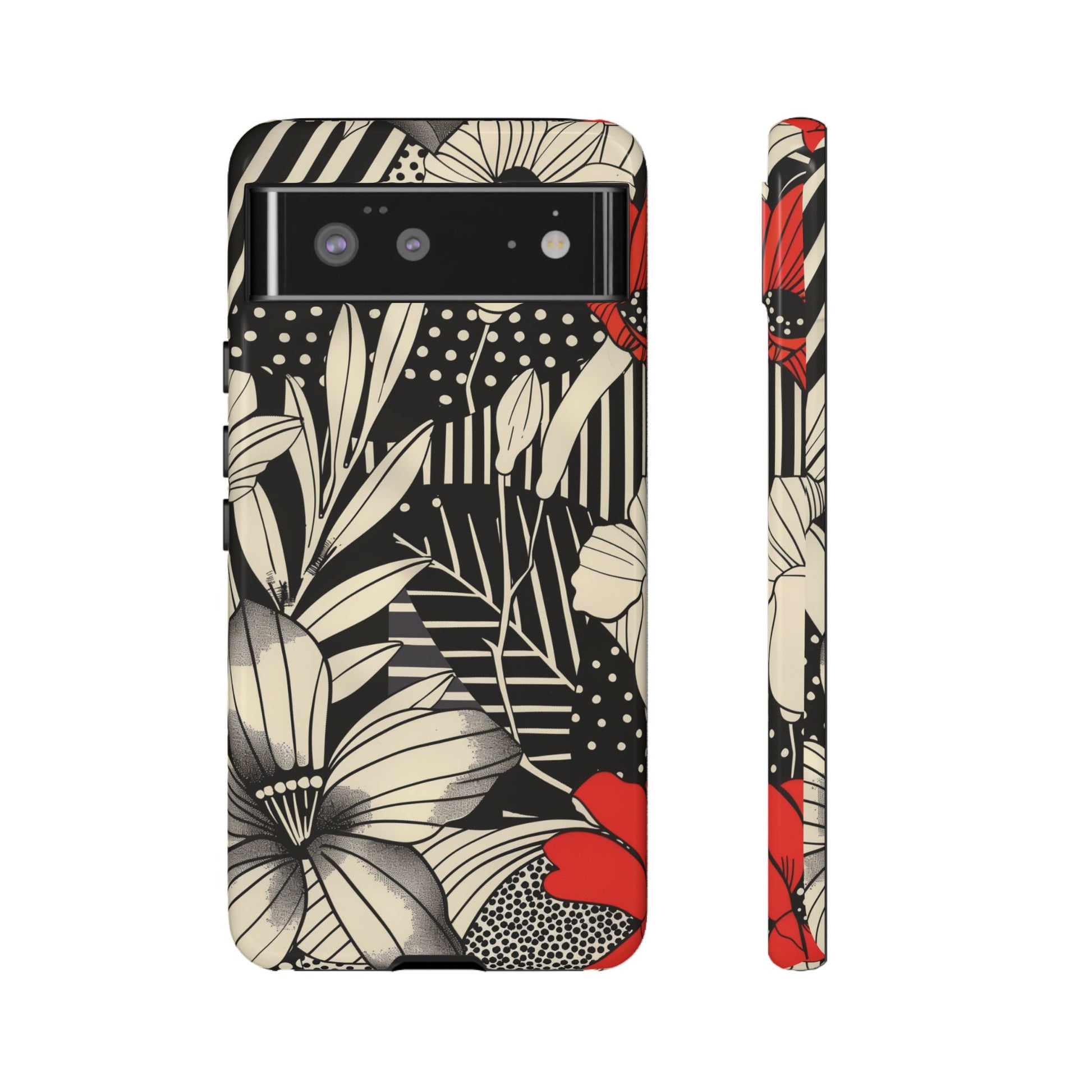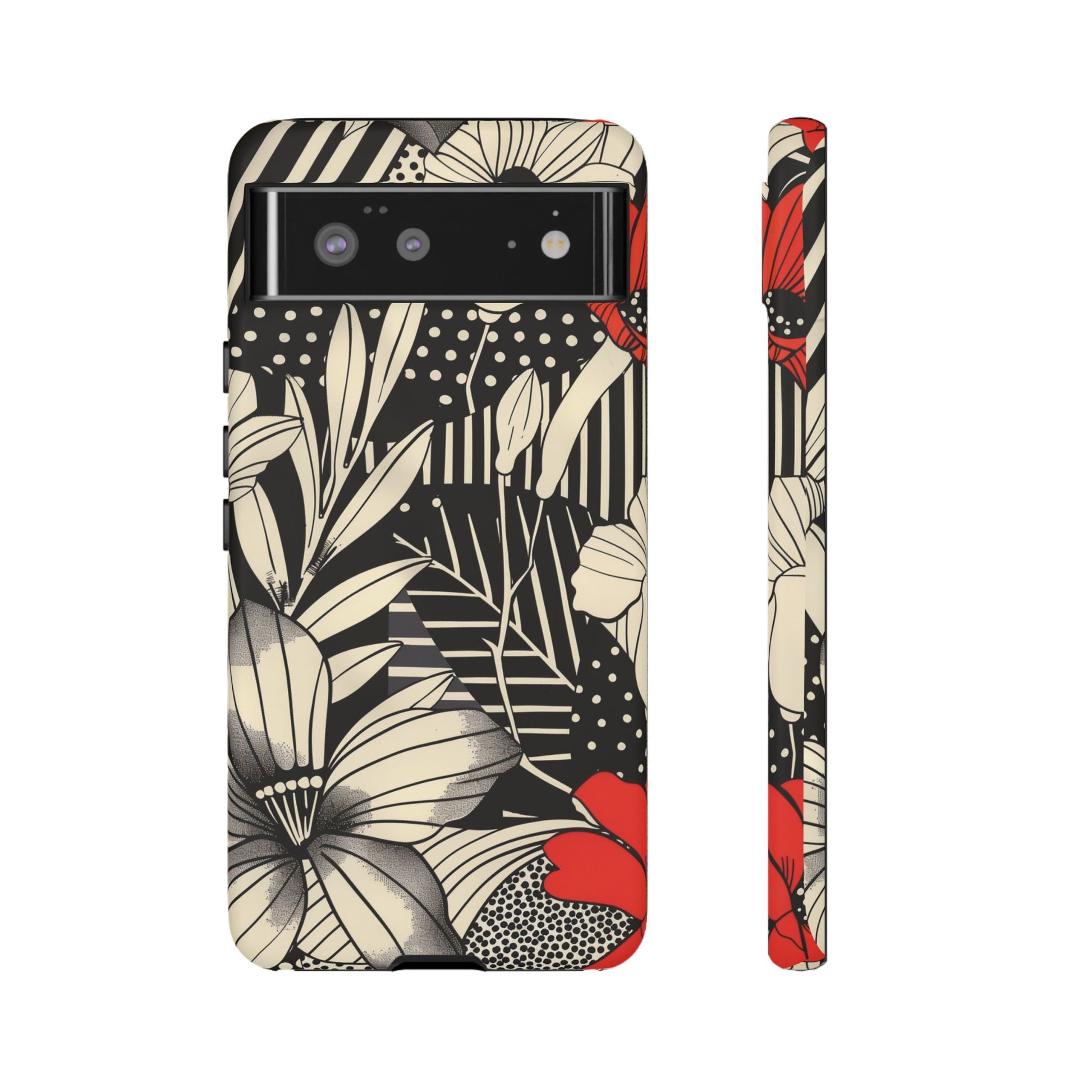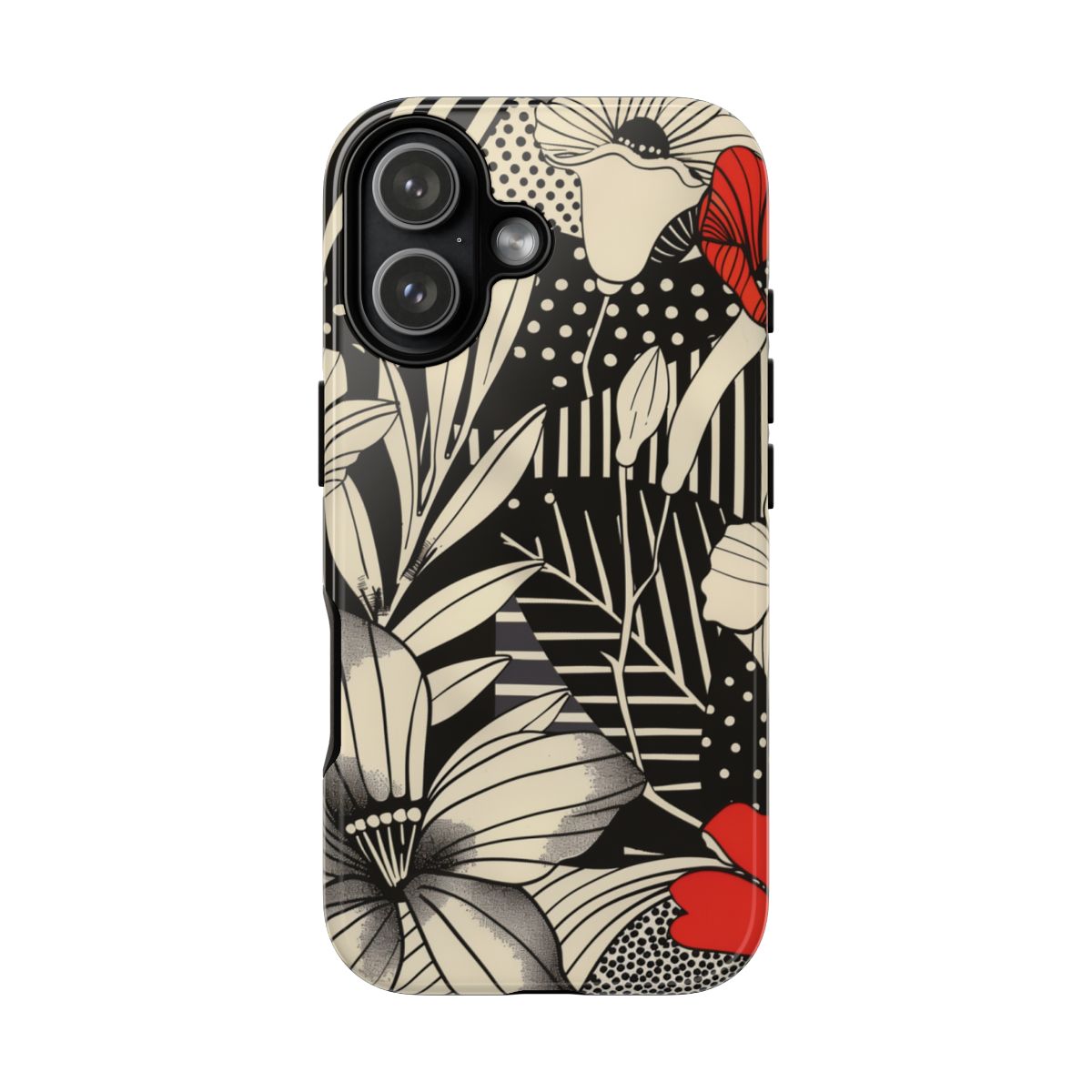 Scarlet Noir is where elegance meets edge. With bold black and cream botanicals layered against geometric accents and vivid red petals, this design feels high-fashion and artistic. The striking contrast creates a look that is dramatic, sophisticated, and unforgettable.