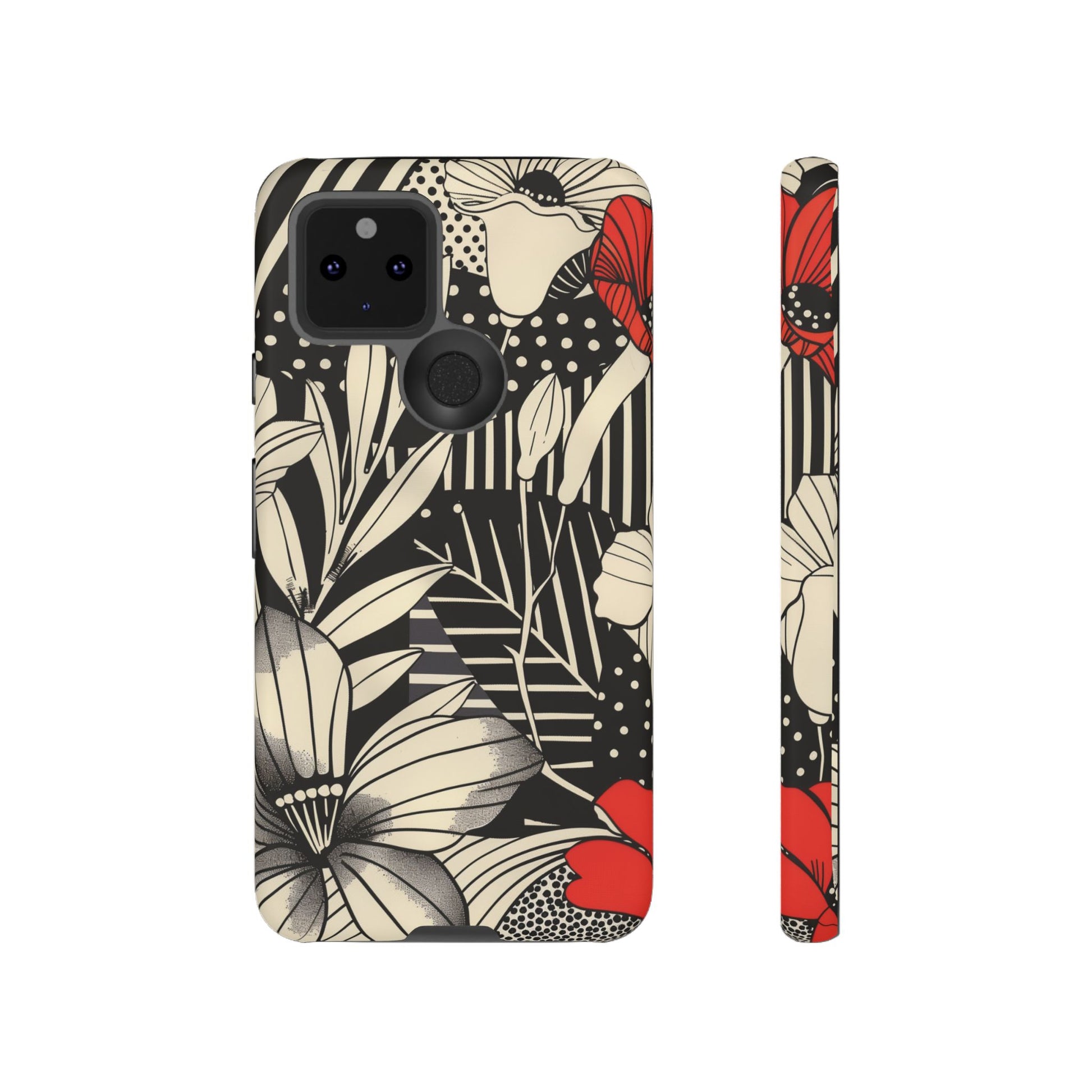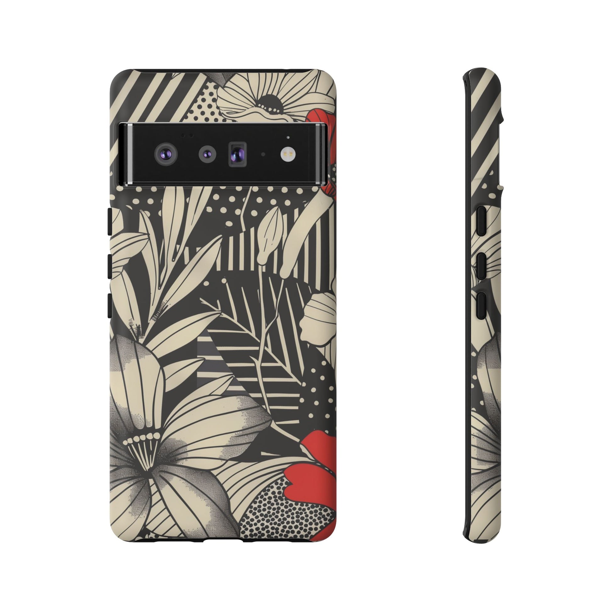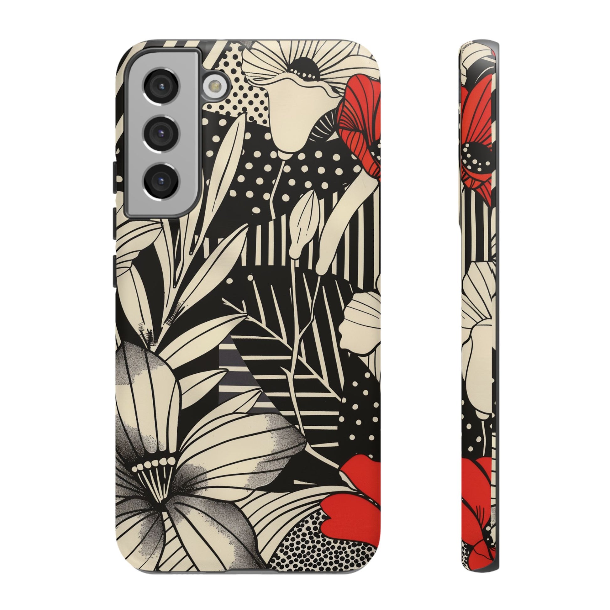 Scarlet Noir is where elegance meets edge. With bold black and cream botanicals layered against geometric accents and vivid red petals, this design feels high-fashion and artistic. The striking contrast creates a look that is dramatic, sophisticated, and unforgettable.
