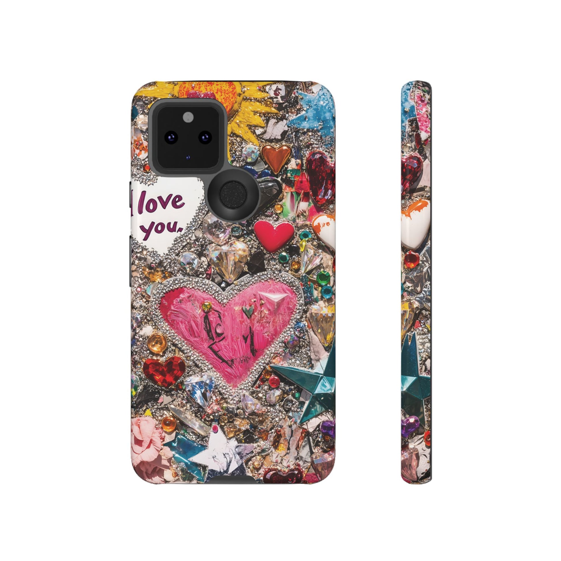 Express your affection with the "Love Mosaic" phone case. This unique design features a vibrant mosaic of textures, colors, and sparkling elements, centered around a heartfelt "I love you" message. The "Love Mosaic" phone case is perfect for those who want to express their love in a unique and artistic way. It's a stylish and heartfelt way to add a personal touch to your everyday look.