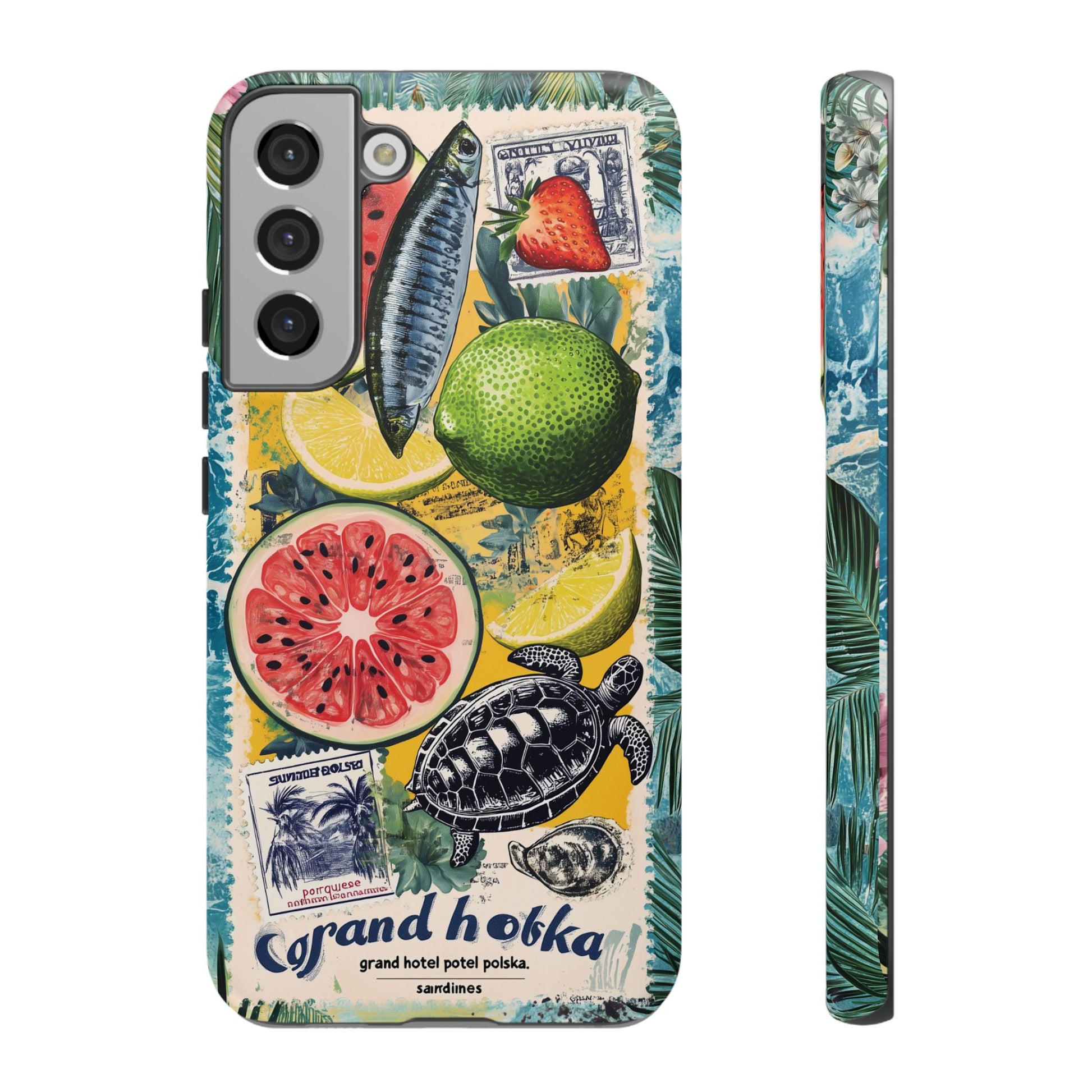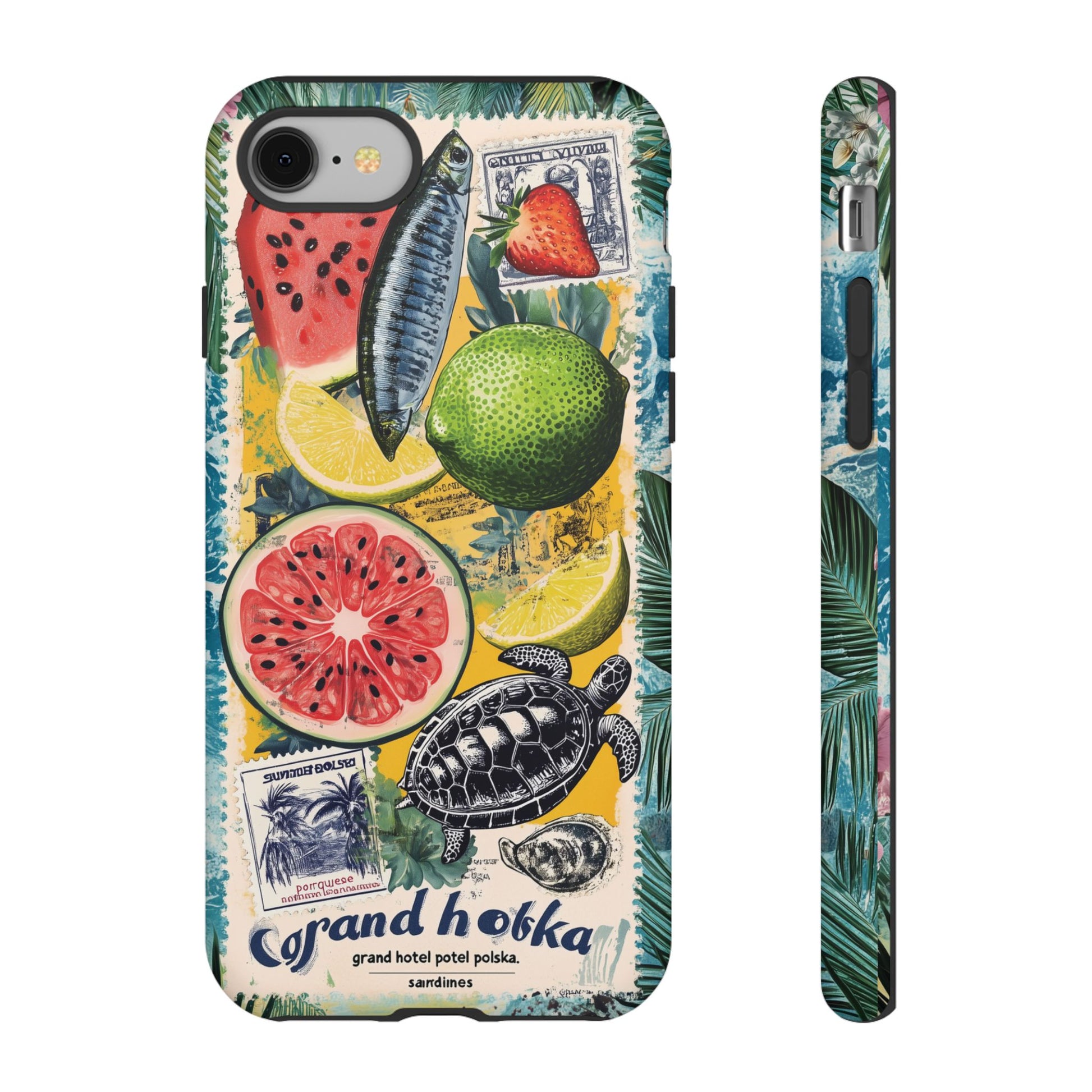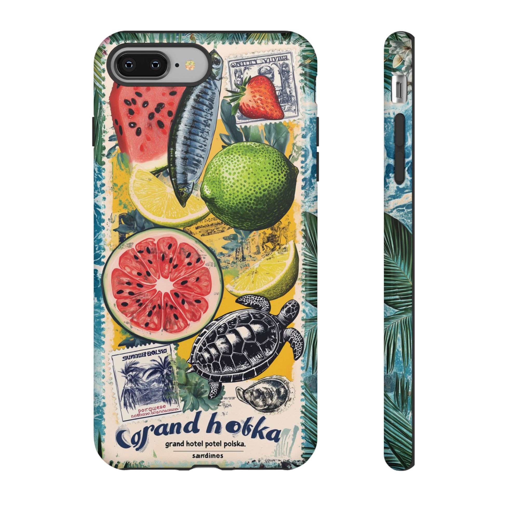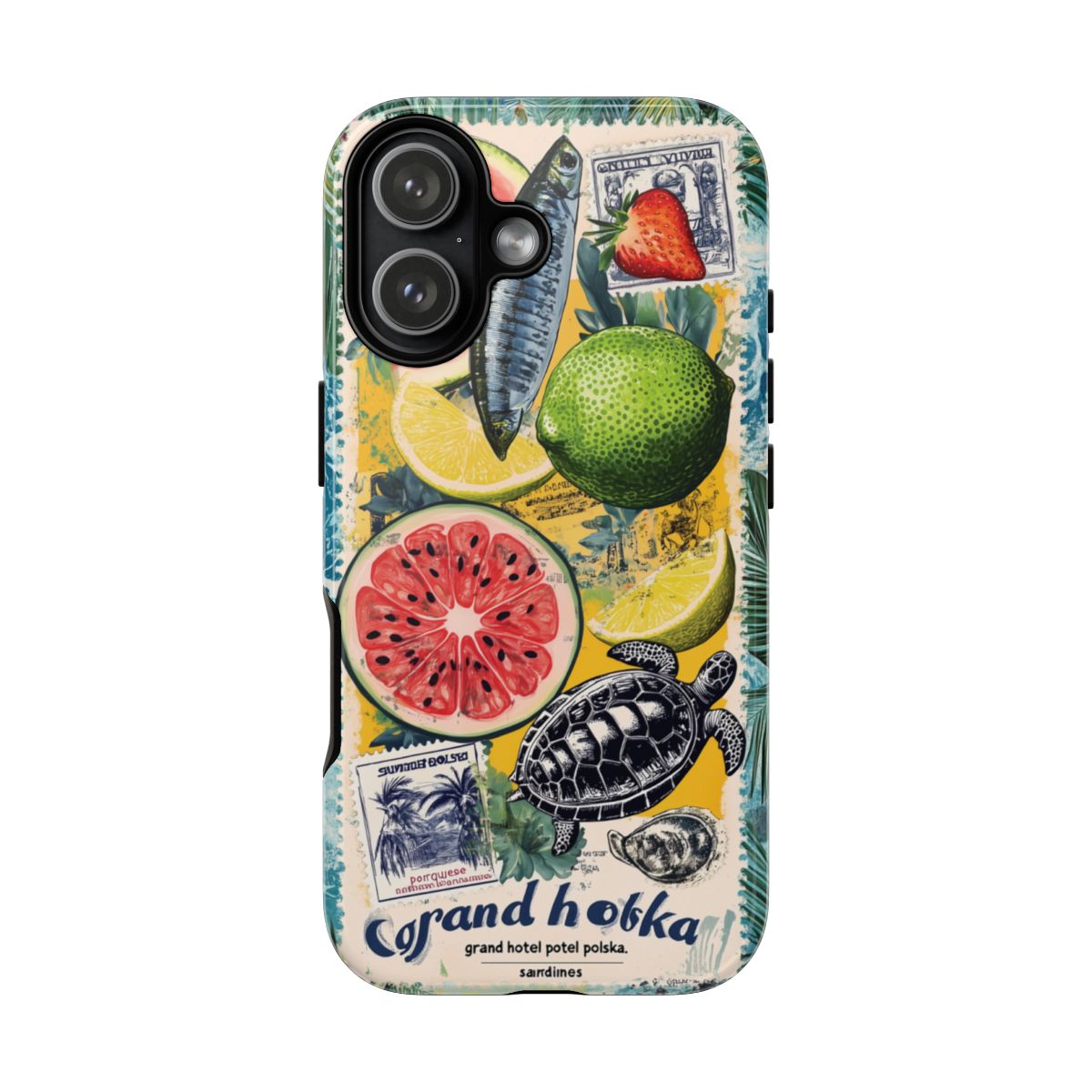 Vintage Voyage is inspired by the golden age of travel, a collage that blends postcards, stamps, and coastal treasures with fresh tropical fruits and nautical accents. Watermelon slices, limes, seashells, and a sea turtle create a vibrant mix that feels both nostalgic and adventurous. Perfect for lovers of travel, eclectic designs, and summer-inspired art, Vintage Voyage is a playful reminder of seaside getaways and faraway adventures.